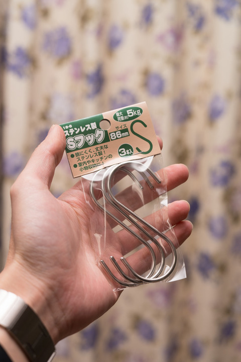 フックです。耐荷重5kg。これをレンジフードに引っかければ
