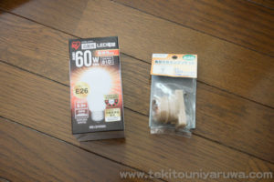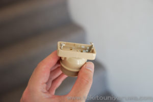 最初にLED電球をあらかじめランプソケットにつけてからLED電球部分を持って角形引掛ソケットに回してつけてましたが、天井側のソケットが周り出したために、ちゃんと抑えてはめなおしました。