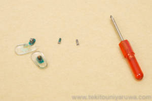 鼻当てが通常のものと、クッション鼻当てそれぞれ10組、メガん滑り止め、ねじ、クロス、ドライバ、ピンセット、ケースも付いている。