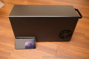 そしてeGPUエンクロージャーの筐体。これも結構デカイ。